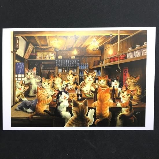 おおやぎえいこ にゃーにゃー村ポストカード「にぎやかな居酒屋」