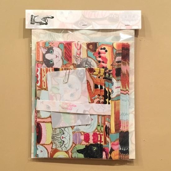 色とりどりの甘いスイーツと猫たちに心踊る便箋・封筒・宛名シールのセットです。
