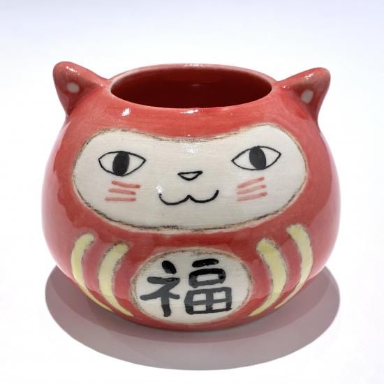 ぷっくり丸い形にぴょこっと突き出た耳がかわいい猫だるまです。