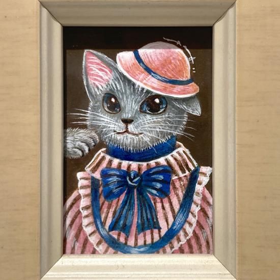 レトロなドレスに身を包んだ猫のお嬢さんを描いた一枚です。