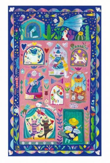 メキシコの色彩・文化に影響を受けた独特のタッチやカラフルな色遣いが、明るい気持ちにさせてくれます。