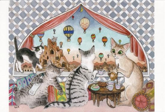 琴坂映理 ポストカード「バルーンフェスタで珈琲を」