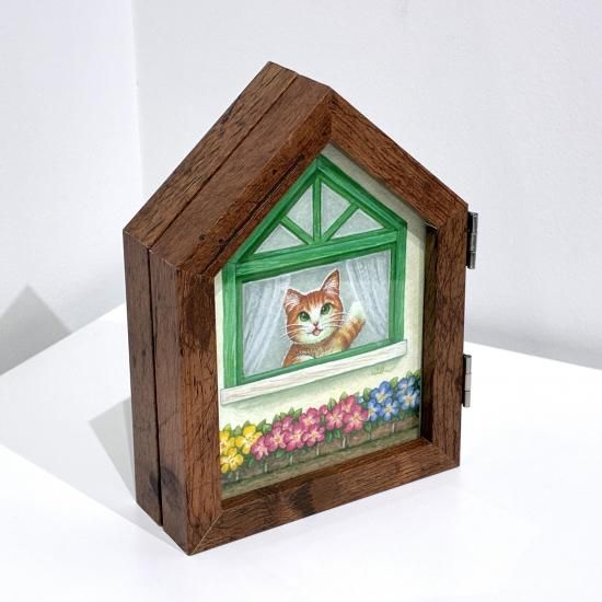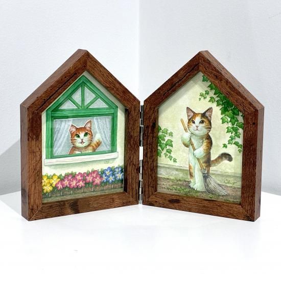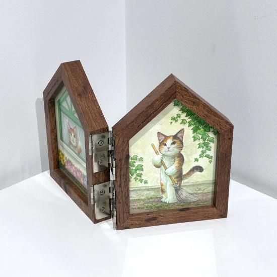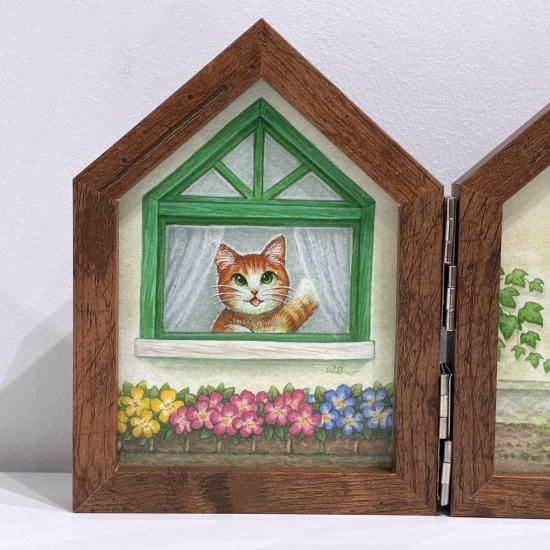 ハウス型のフレームに合わせて描かれた2枚1対の作品です。