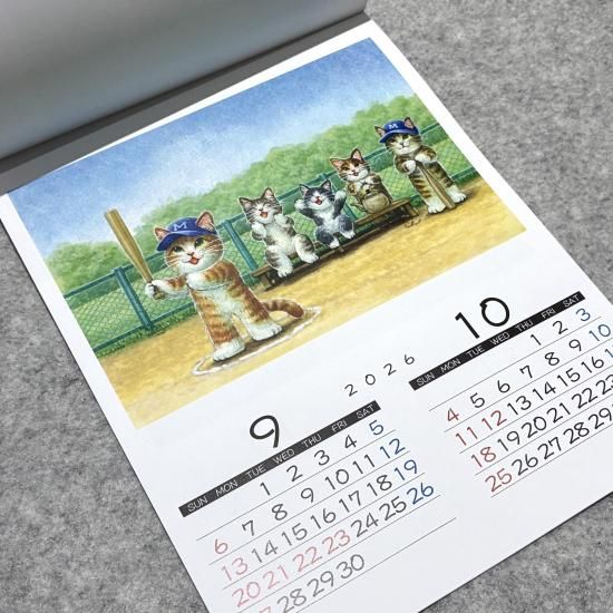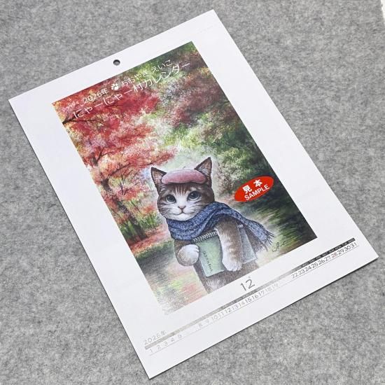 おおやぎえいこさんの人気シリーズにゃーにゃー村の2026年カレンダー。