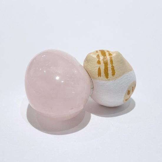 梶原美穂 石なまけ ローズクォーツ・クリーム茶白