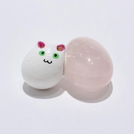 梶原美穂 石なまけ ローズクォーツ・白猫