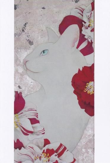 猫の姿を愛嬌たっぷりに、時にユーモアを交えながら描く日本画家・柏村文路さんのポストカードです。