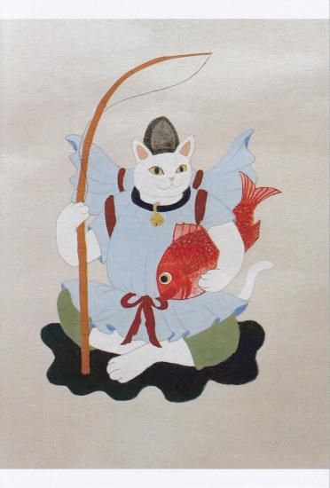猫の姿を愛嬌たっぷりに、時にユーモアを交えながら描く日本画家・柏村文路さんのポストカードです。