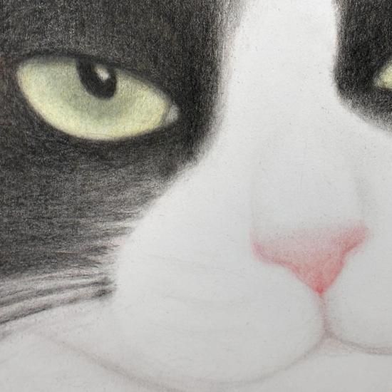 色鉛筆による密度の高い描き込みとやわらかな毛並みを描き出す表現力に惹き込まれます。