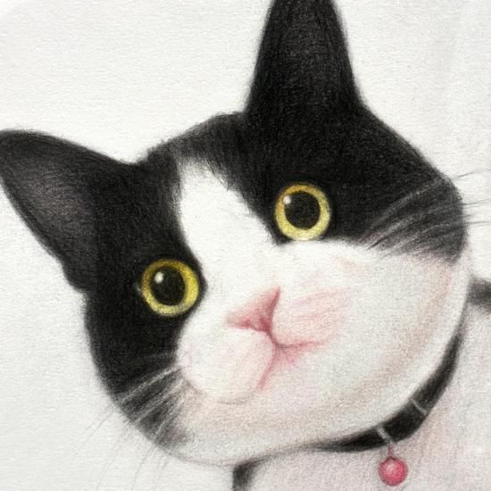 色鉛筆による密度の高い描き込みとやわらかな毛並みを描き出す表現力に惹き込まれます。