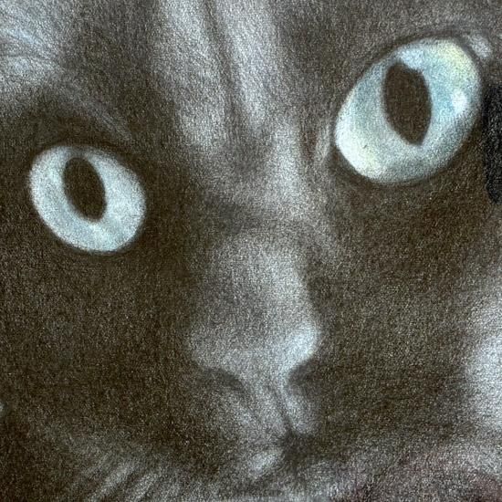 色鉛筆による密度の高い描き込みとやわらかな毛並みを描き出す表現力に惹き込まれます。