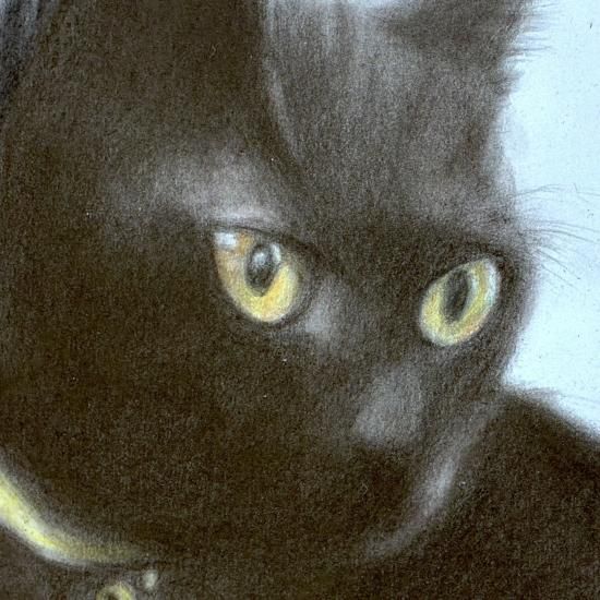 色鉛筆による密度の高い描き込みとやわらかな毛並みを描き出す表現力に惹き込まれます。