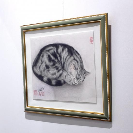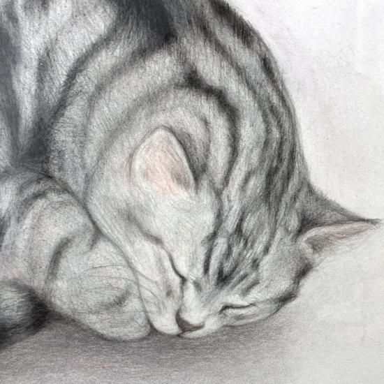 色鉛筆による密度の高い描き込みとやわらかな毛並みを描き出す表現力に惹き込まれます。