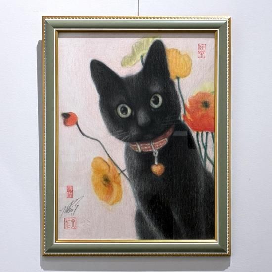 色鉛筆による密度の高い描き込みとやわらかな毛並みを描き出す表現力に惹き込まれます。