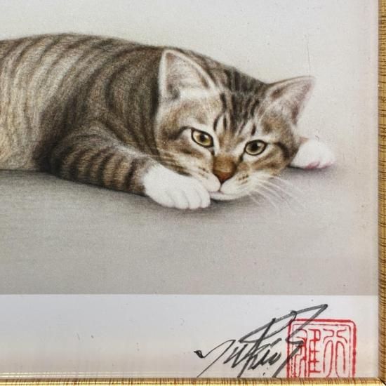 高橋行雄 版画「トラ仔猫 ム、ム、ム」